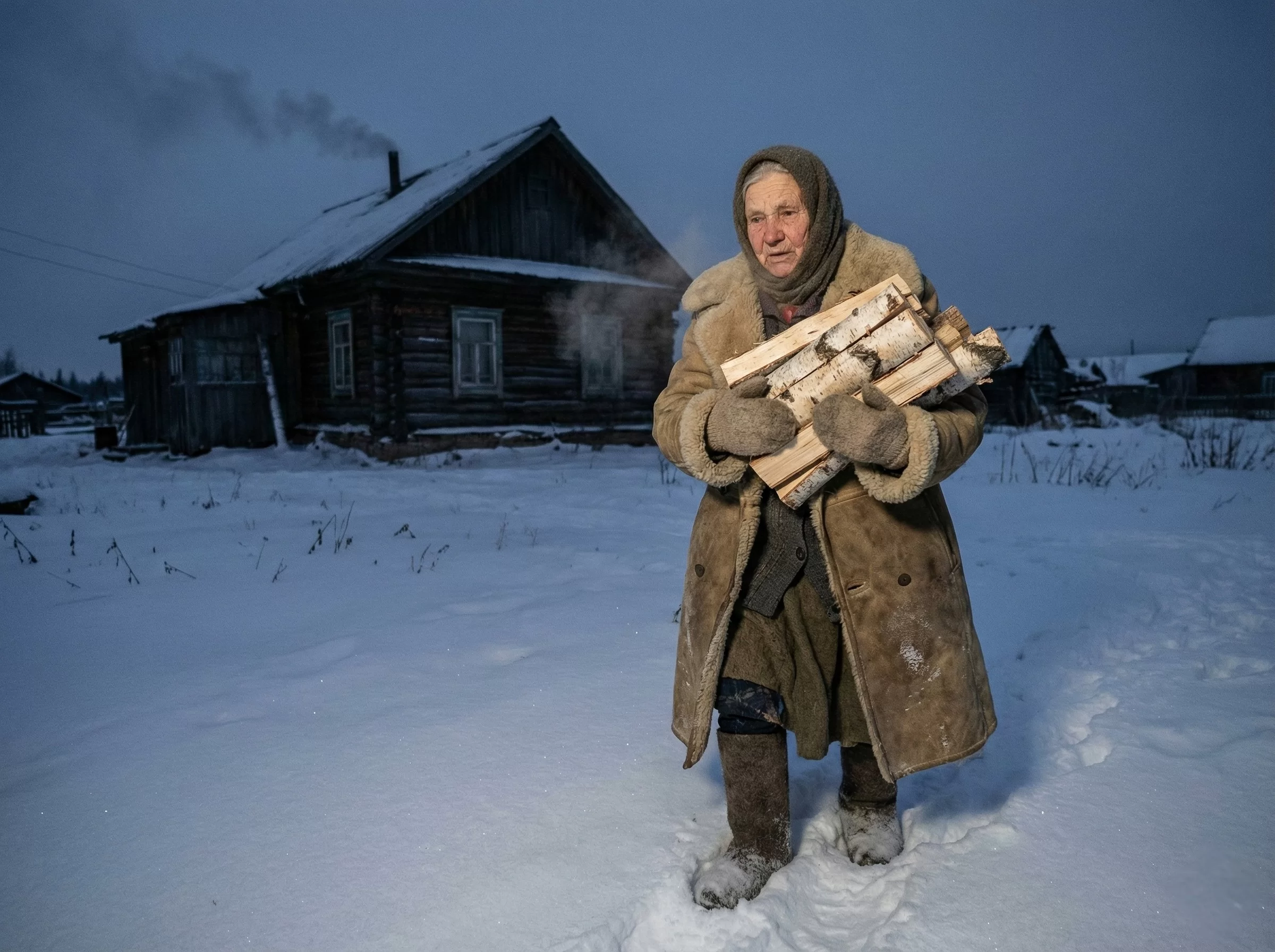 Для восьмидесятилетней женщины ежедневный фитнес с охапкой поленьев при минус сорока — суровая необходимость. Печь не прощает лени: пропустил топку — дом остынет за считанные часы. Этот ритм держит в тонусе лучше любых врачей, но цена такой бодрости — изношенные суставы и вечная тревога за запасы топлива.